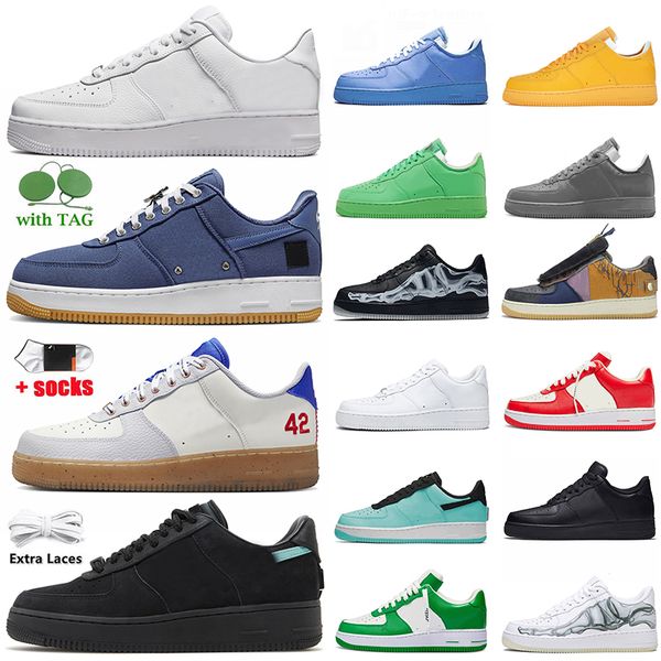 new designer 2023 airsfose 1 running shoes af 1 low triple black certified white women mens trainers mca university blue skeleton twist plat