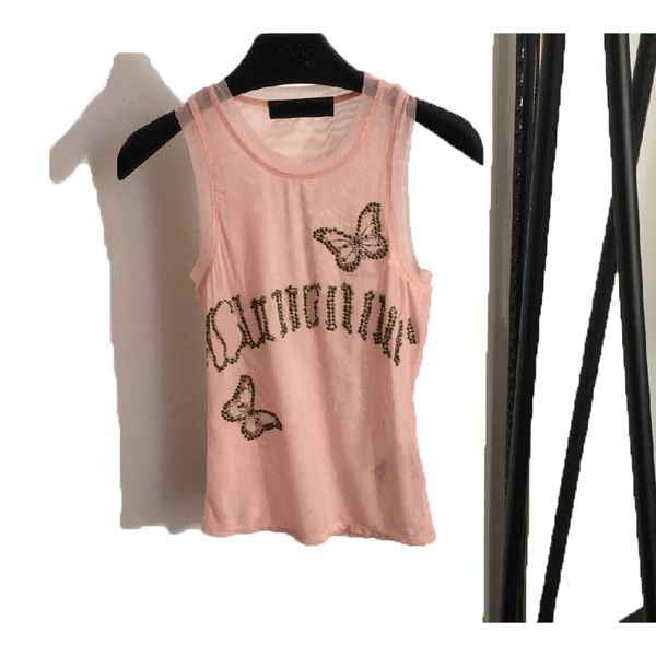 new designer womens t shirt high-end translucent lace women hollow out rhinestone short sleeve vest luxury fashion, White