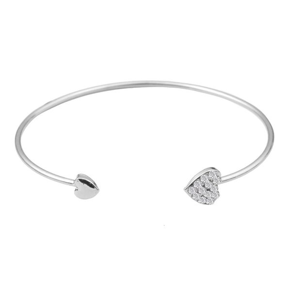 new fashion adjustable crystal double heart bow bilezik cuff opening bracelet for women jewelry gift mujer pulseras 0s3q, Golden;silver
