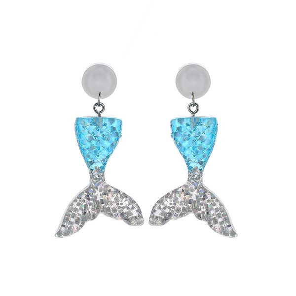 new fashion diy handmade drop earring little mermaid glitter tail dangle earrings women jewelry mermaid tail fish scales earring, Silver