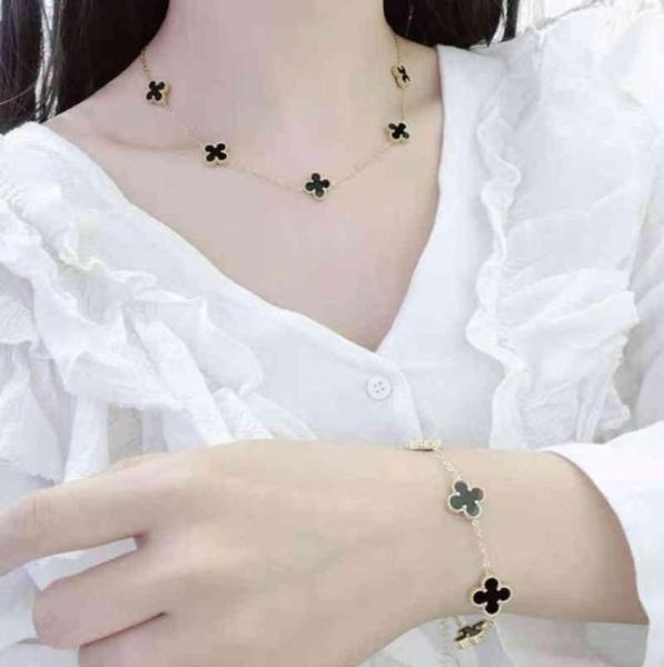 new fashion stainls steel women clover set jewelry luxury brand 18k gold necklace bracelet90061585419624, Golden;silver
