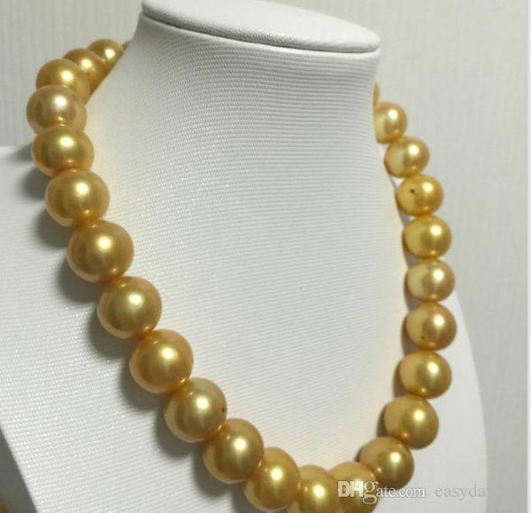 new fine huge 10-11mm south sea round gold yellow pearl necklace 17.5inch, Silver