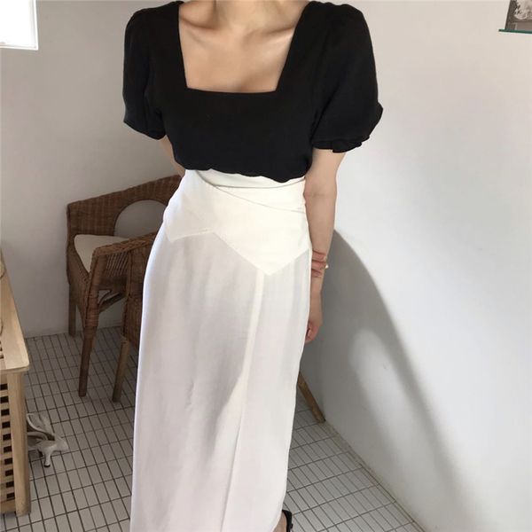 new girls summer blouse women suit shirt short sleeves high waist long print a line skirts two piece suits sell separately, White