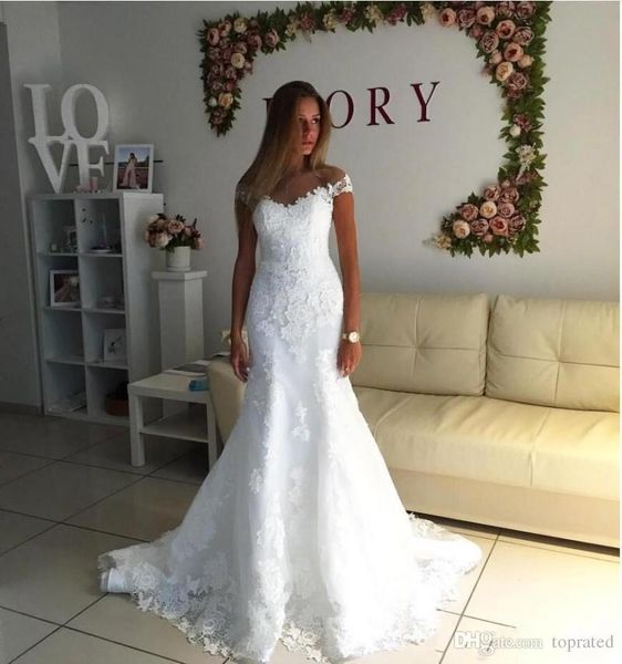 new gorgeous elegant lace mermaid wedding dresses with lace applique off shoulder wedding dress custom made bridal gowns vestidos de noiva, White