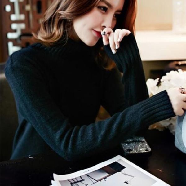 new korean fashion slouchy sweaters womens new loose bottoms autumn winter solid turtleneck pullover knitted sweater y200910, White;black