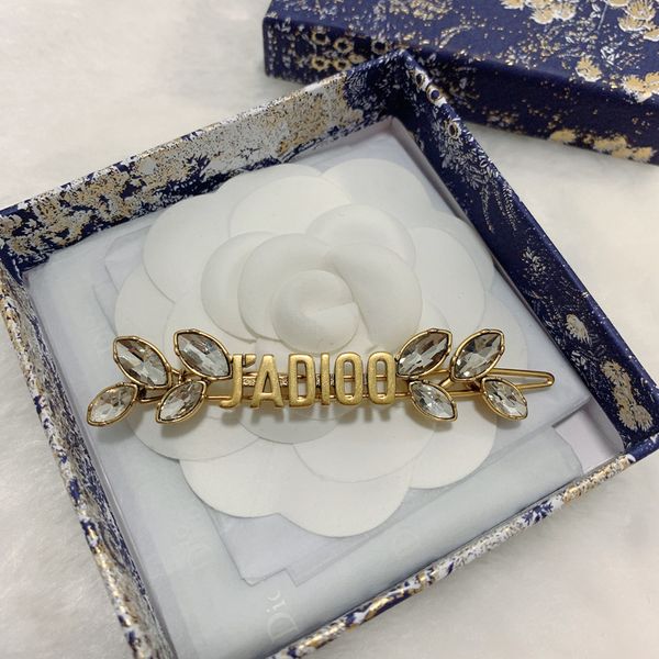 new letter leaf water drop crystal hairpin high version brass material temperament female net red, Golden;silver