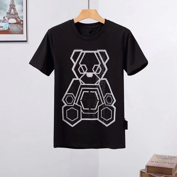 new mens designer tshirts summer fashion t shirts with diamond beads cotton short sleeve tee print bear luxury o neck streetwear slim hip h, White;black