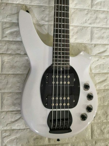 new quality electric bass guitar m bongo metal white 5 strings h-h active pickup