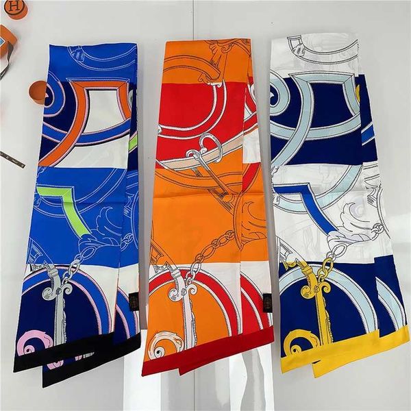 new spring and autumn season printed blue universal women's chain square scarf with plain decorative ethnic scarves, Black;purple