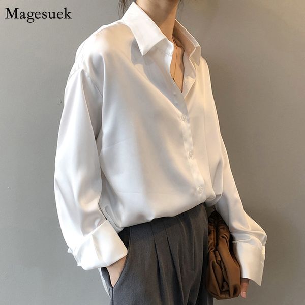 new spring turn-down collar women shirt white loose satin solid blouse women casual button silk shirt woman blusas 210302
