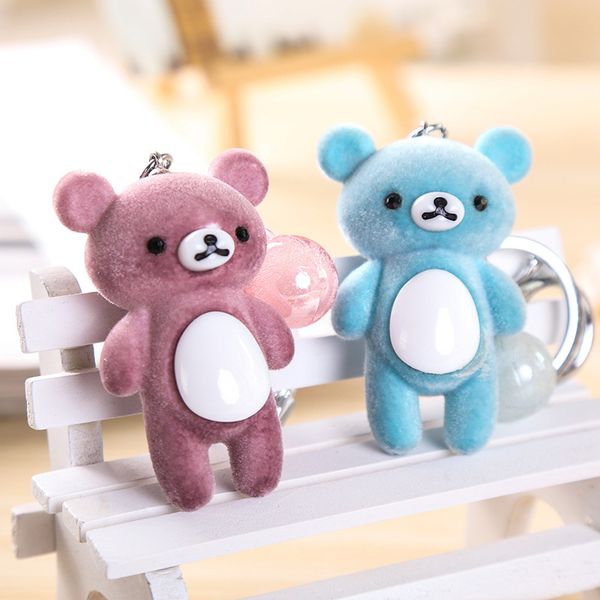 new style cute flocking bear keychain bag pendant couple car key chain festival promotional gifts keyrings wholesale in 2020, Slivery;golden