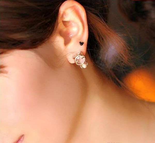 new style variety of collocations a cat's-eye earrings inlaid pearl alloy frame anti allergy earrings not fading bow cat modelling ear, Silver