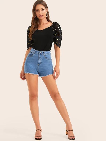 new summer fashion v-neck polyster embroidery flower lantern sleeve ladies short black colours ing, White