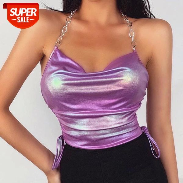 new women fancy streetwear club halter camis vest off shoulder slim bandage v neck open back crop purple camisoles #rz2f, White