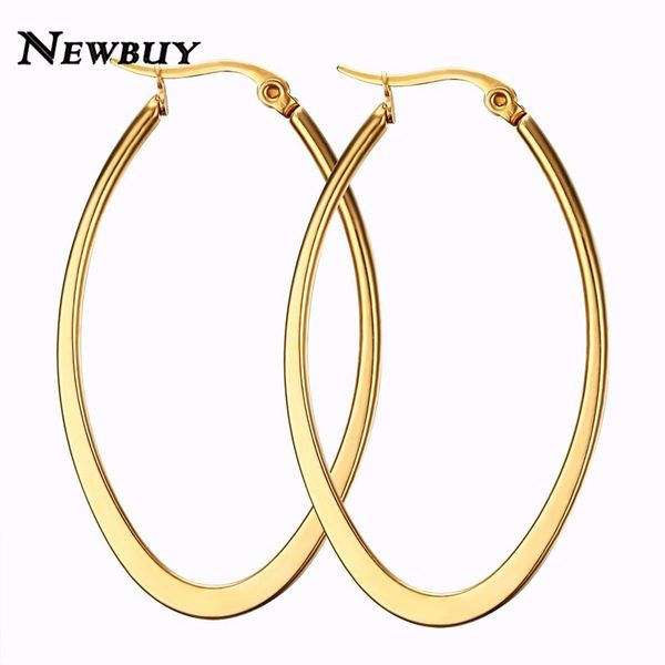 newbuy 2020 new fashion big size hoop earrings women bijoux stainless steel earring jewelry fine birthday gift, Golden;silver