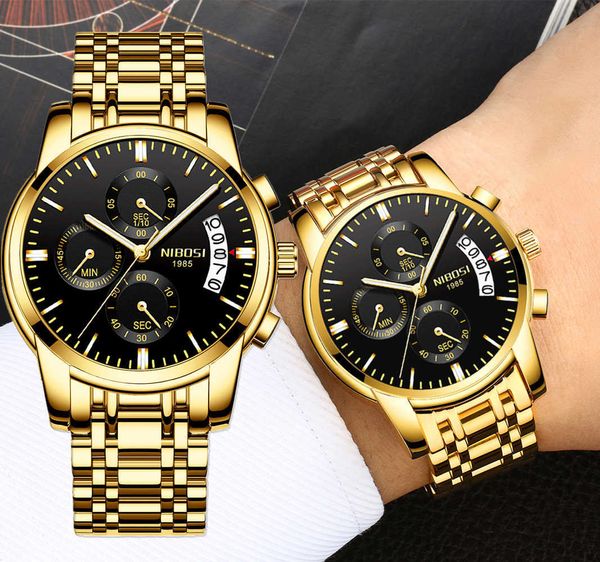 nibosi luxury mens watches brand sport quartz wristwatches for men waterproof chronograph business relogio masculino 210728, Slivery;brown
