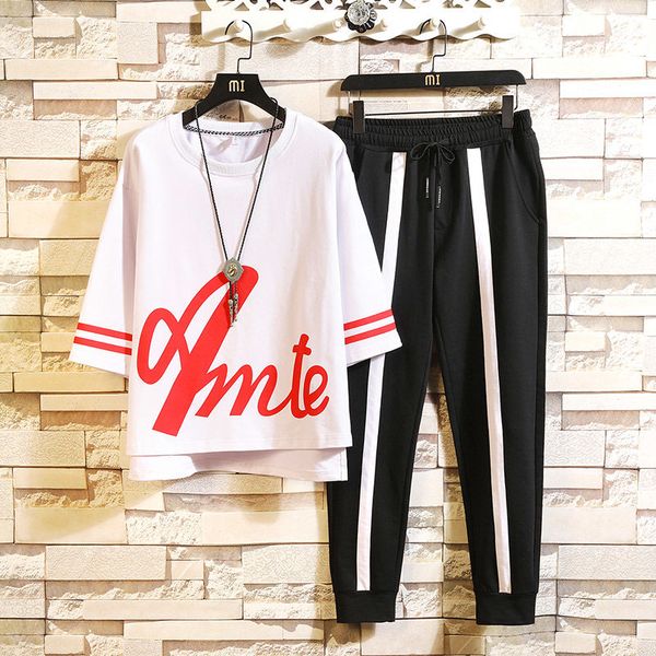 nicemix tshirt men t-shirt pants suits print hip hop casual short sleeve sets sportswear fashion men clothes high quality, Gray