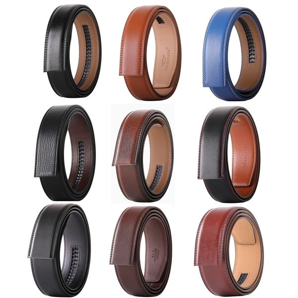 no buckle 35cm width cowskin genuine leather belt men without automatic buckle strap male black brown blue gray white b509 220811