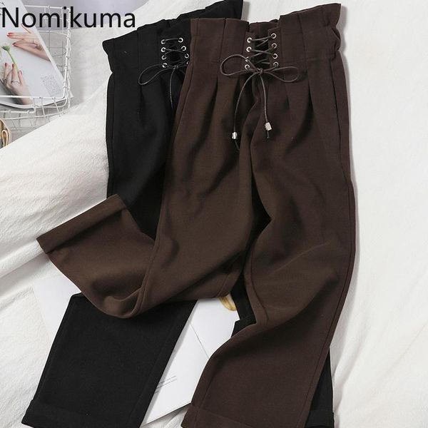 nomikuma autumn winter woolen women pants korean cross lace up high waist ankle trousers 2021 solid straight 6d083 women's & capris, Black;white