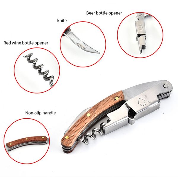 non-slip wood handle corkscrew knife pull tap double hinged beer red wine opener stainless steel bottle opener bar tool gift vt1768