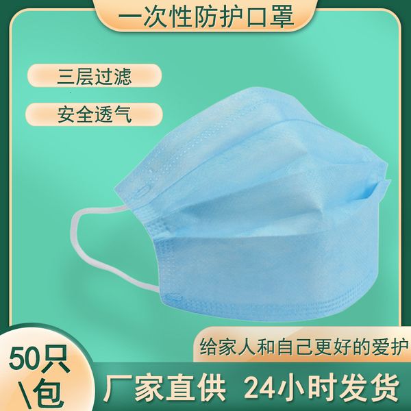 non-woven straight civilian 50 disposable mask, three-layer general protective mask