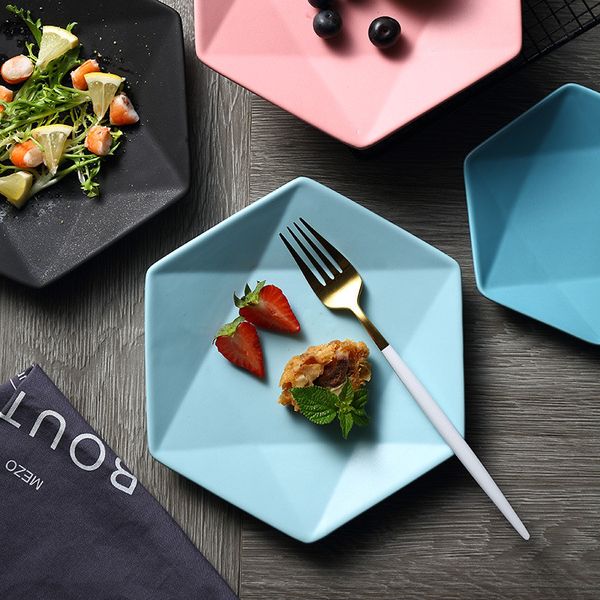 nordic шестиугольник десертная тарелка фарфоровый шестиугольник керамическое блюдо салат завтрак фруктовый торт тарелка закуска блюдце блюдц