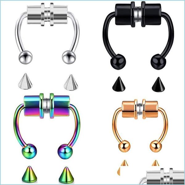 nose rings studs stainless steel magnetic false nose ring fake piercing horseshoe rings artificial alloy noses hoop septum for women dhn7u, Silver