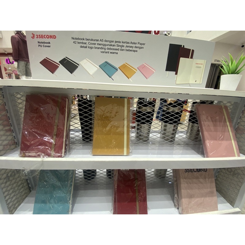 Notebook berukuran A5 dengan jenis kertas Aster Paper 42 lembar , Cover menggunakan Single Jersey dengan detail logo branding debossed dan beberapa variant warna
