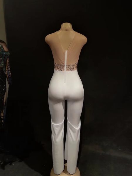 nude white clothes silver rhinestones stretch jumpsuit female singer dance ds bodysuit nightclub outfit one-piece jumpsuits, Black;red