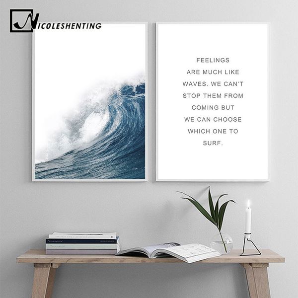 ocean sea waves canvas nordic posters prints landscape scandinavian style wall art painting decoration pictures for living room