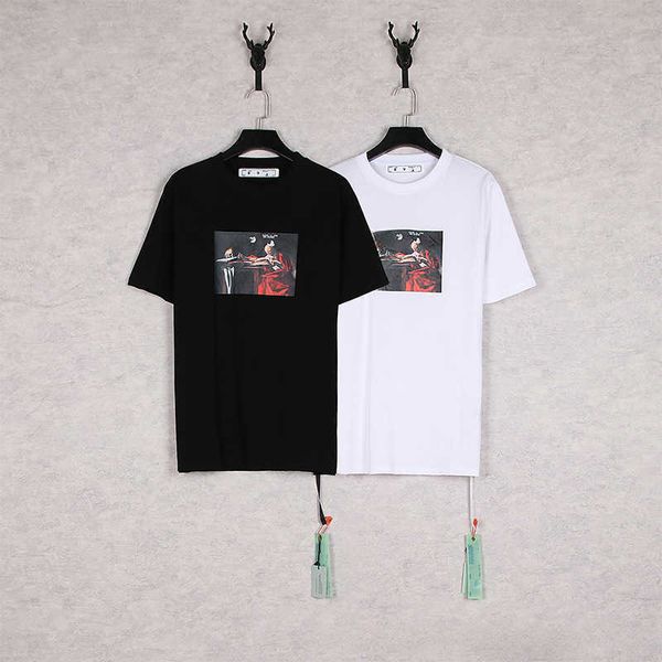 off 100%cotton loose harajuku t shirts mens streetwear chic short sleeve tee for men women luxury white brand printed, White;black