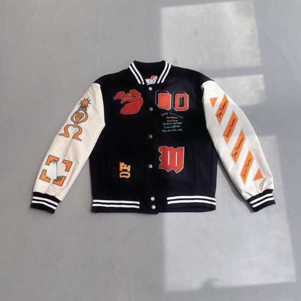 off men's jacket designer coat autumn embroidery splice baseball jersey button cardigan handsome couple long sleeve top, Black;brown