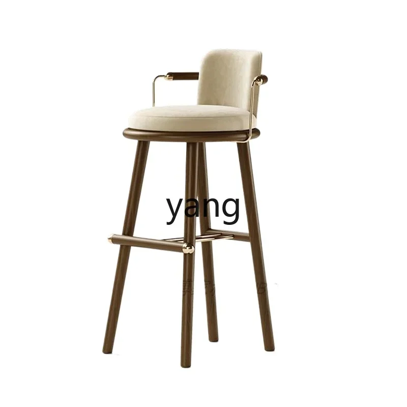Yjq Light Luxury Solid Wood Bar Chair Home Kitchen Island Hotel Cafe Bar Stool Designer