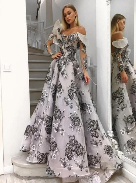 off the shoulder long sleeve prom dresses black and white design evening gown plus size backless formal party wear9065095
