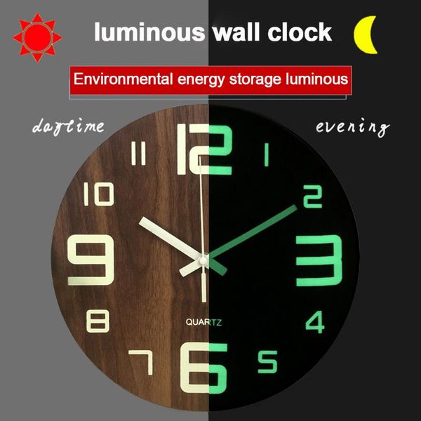 office luminous wall clock quartz non ticking night lights easy to read wooden silent bedroom living room arabic number