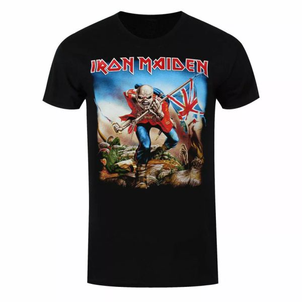 official iron maiden t shirt the trooper eddie black classic rock metal band tee, White;black