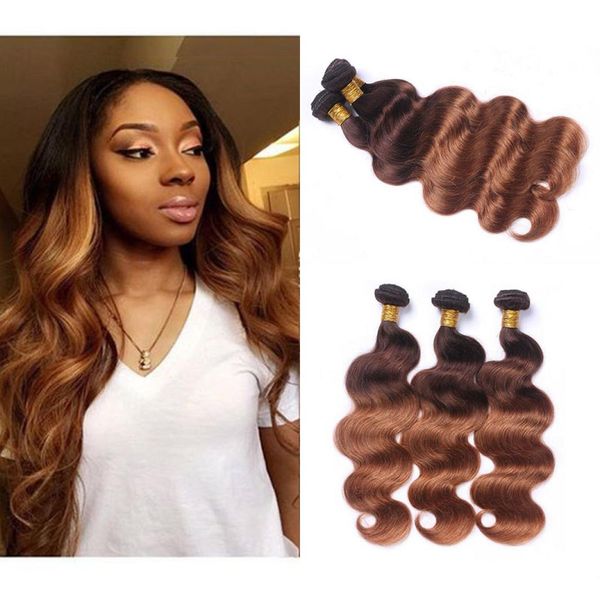 ombre 430 body wave 3 bundles brazilian remy human hair weaves ombre color two tone dark brown to medium auburn hair extensions7297843, Black
