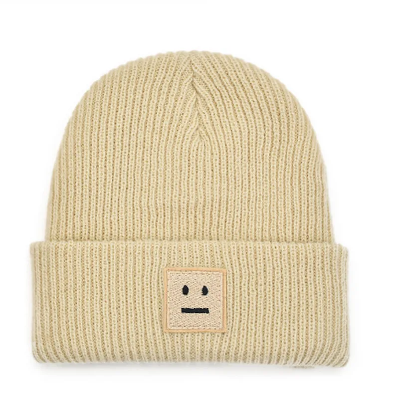 Autumn Winter Korean Smlie Embroidered Logo Knitted Hat Outdoor Fashion Casual Solid Color Men Women Couple Warm Woolen Caps