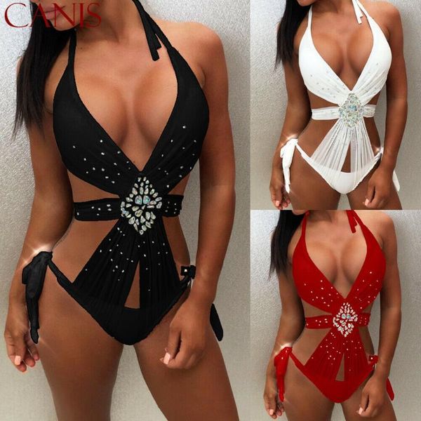one-piece suits women's bandage swimsuit fashion ladies sequin rhinestone crystal diamond push up padded bra bikini swimwear bathing su