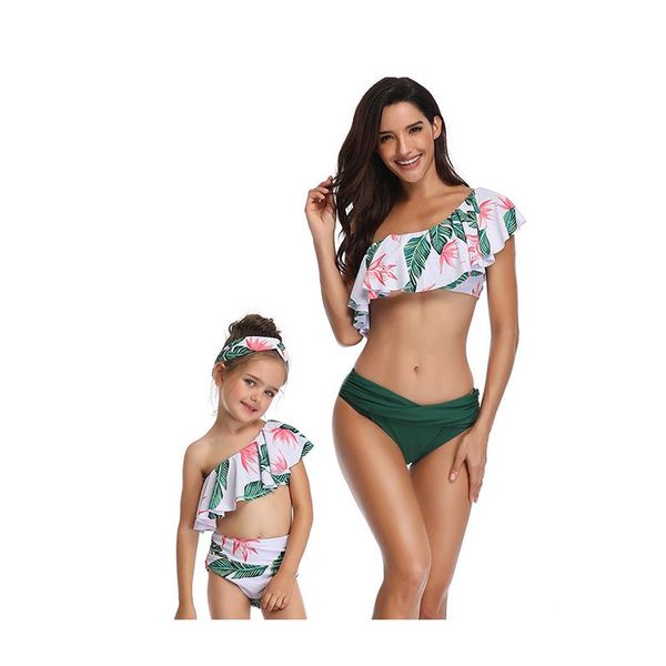 one shoulder women girl high waist bikini set ruffle 2 pieces swimwear for mother and daughter swimsuit family matching outfits