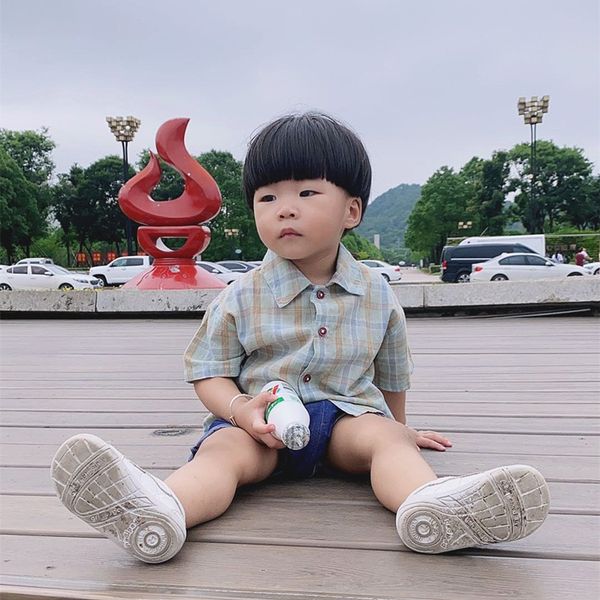 oph4t clothing 2020 children's 1-4 years old baby cotton lapel short tong chen shan tong chen shan children's clothing shirt sleev, White;black