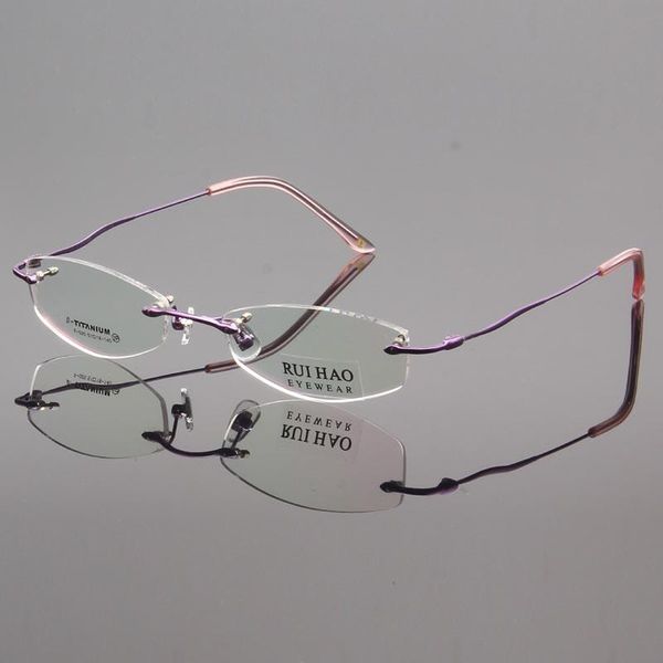 optical eyeglasses frames titanium alloy glasses frame rimless prescription rui hao eyewear brand oculos gafas fashion sunglasses, Black