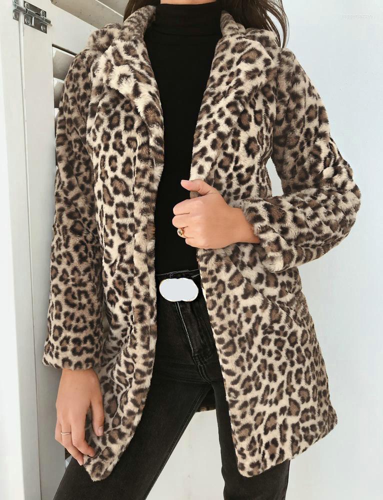 Women' Fur Leopard Furry Faux Women Coats Plus Size Side Pockets Warm Thick Outwear Casual 2022 Autumn Winter Luxury Coat Lady, White