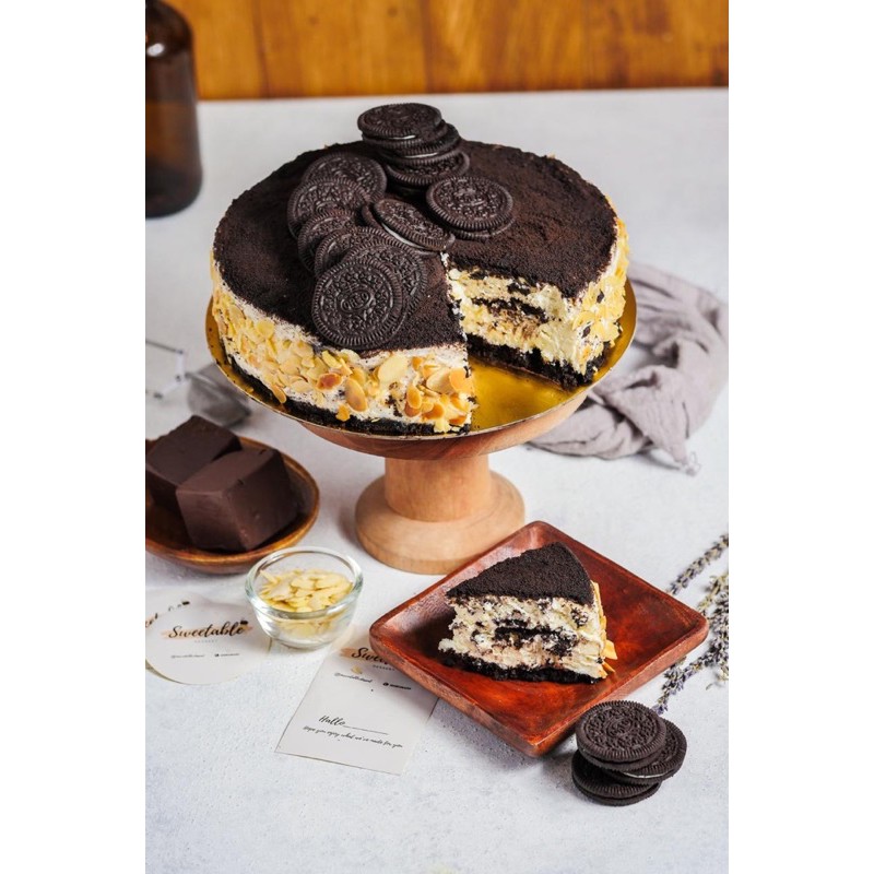 Perpaduan antara lembutnya cream keju dengan manisnya oreo dan gurih nya kacang almond Diameter 20cm round