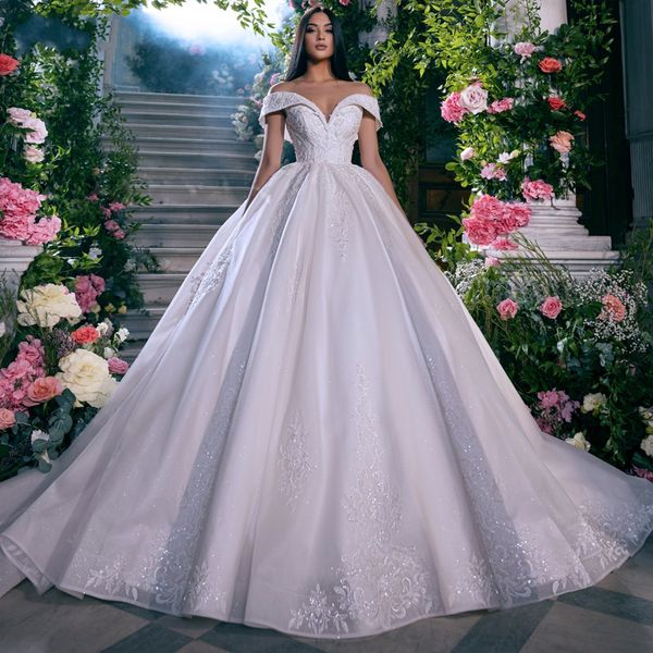 organza wedding dress 2023 bridal gown a-line beading embroidery appliques off the shoulder vestidos de noiva arabic dubai custom made, White