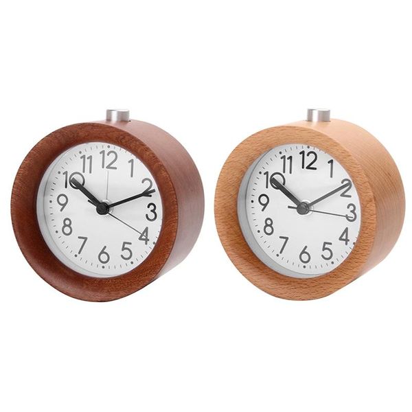 other clocks & accessories wooden clock snooze bedside kids alarm circular needle backlight desksilent wood with desk lamp