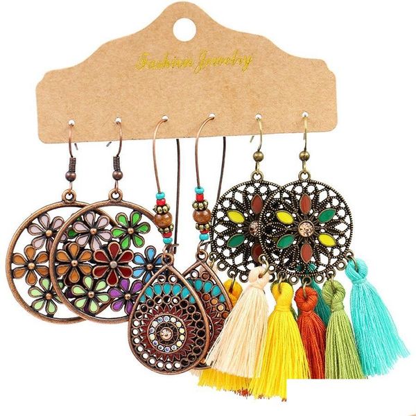 other jewelry sets bohemia national dangle earrings jewelry set ancient bronze hollow flower leaf water drop charm ear rings hoop wo dhcm2, Silver