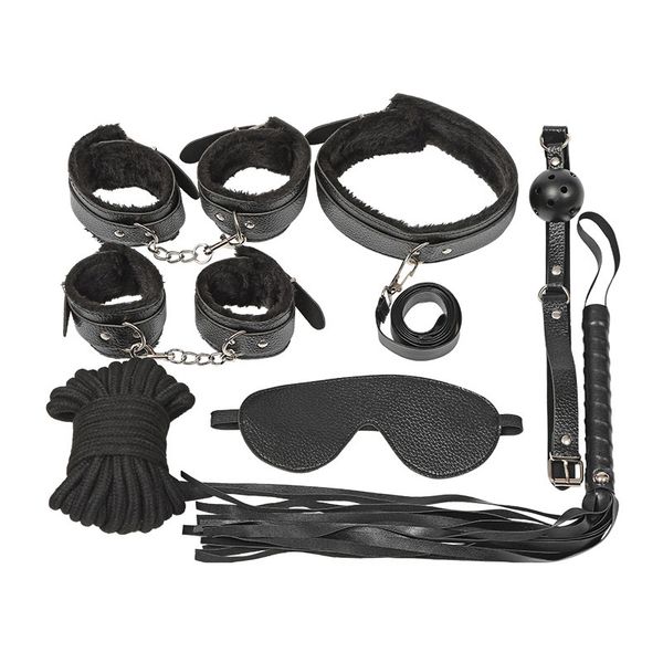 other panties 7pcs toys for gag sm leather adults erotic toys handcuff whip ankle cuffs bondage gear couples games se, Black;white