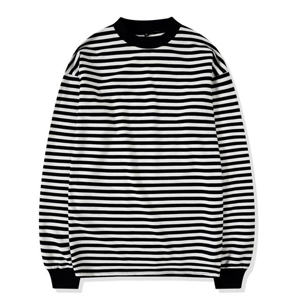 oversize street style mens sweatshirt crewneck black and white striped tee ribbed long sleeve pullover ing