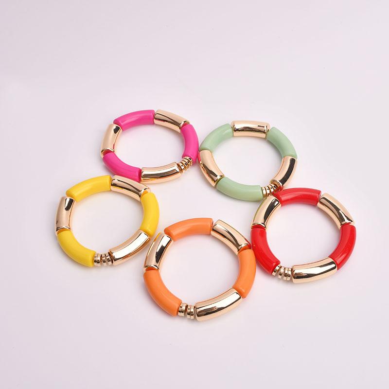 Bangle Fashion Bohemian Color Matching Bracelet Acrylic Elastic Beaded Colors Elbow Spot Copper Wafer Gold Plating Bracelets